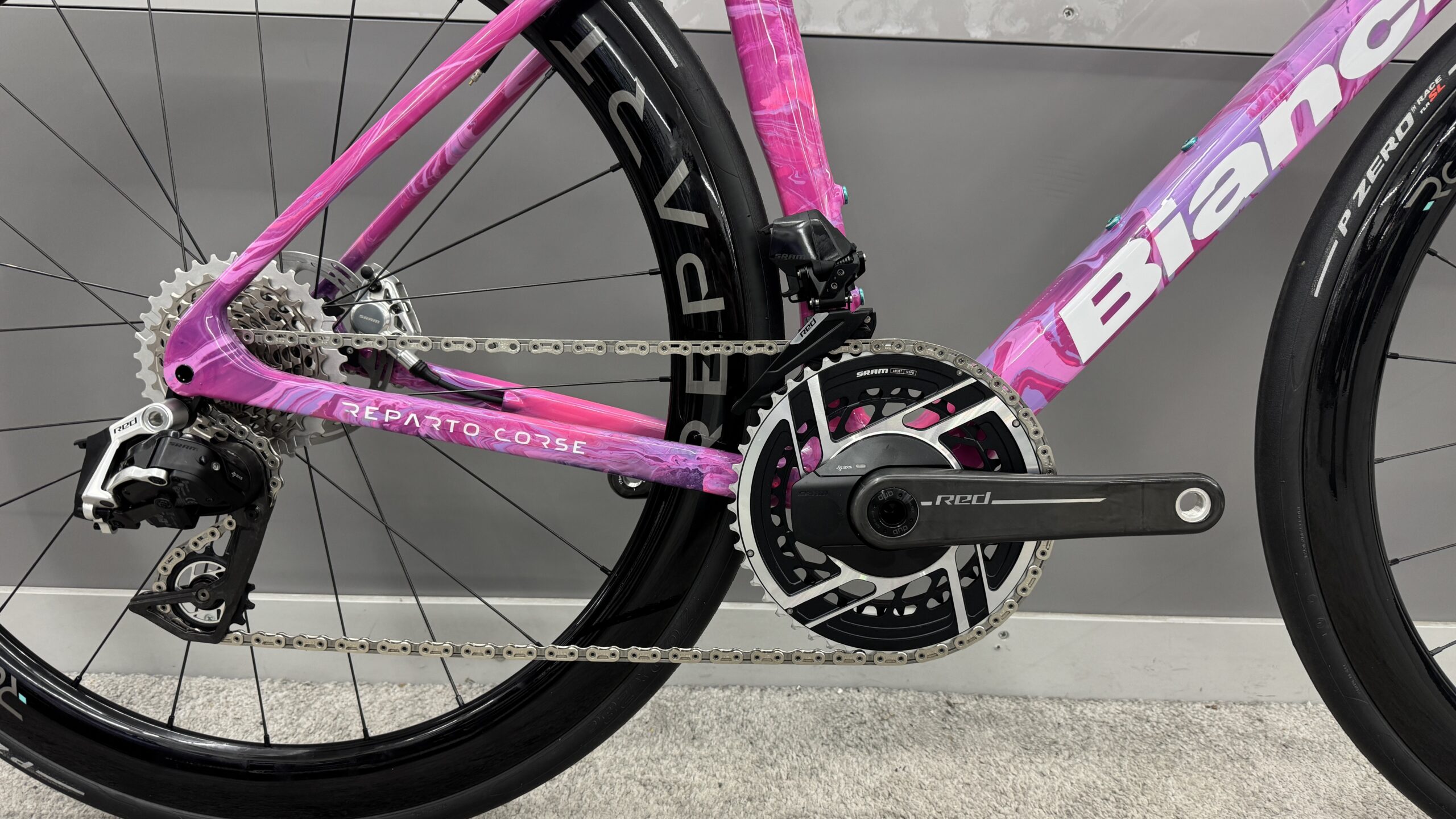 Das Bianchi Specialissima RC verkörpert die ultimative Kombination aus Leistung und Eleganz. Mit seinem ultraleichten Carbonrahmen und der hochwertigen SRAM Red AXS Schaltung bietet es unübertroffene Leistung. Dieses Rad ist die perfekte Wahl für Fahrer, die nach dem Besten suchen und dabei auf unvergleichlichen Stil nicht verzichten möchten.