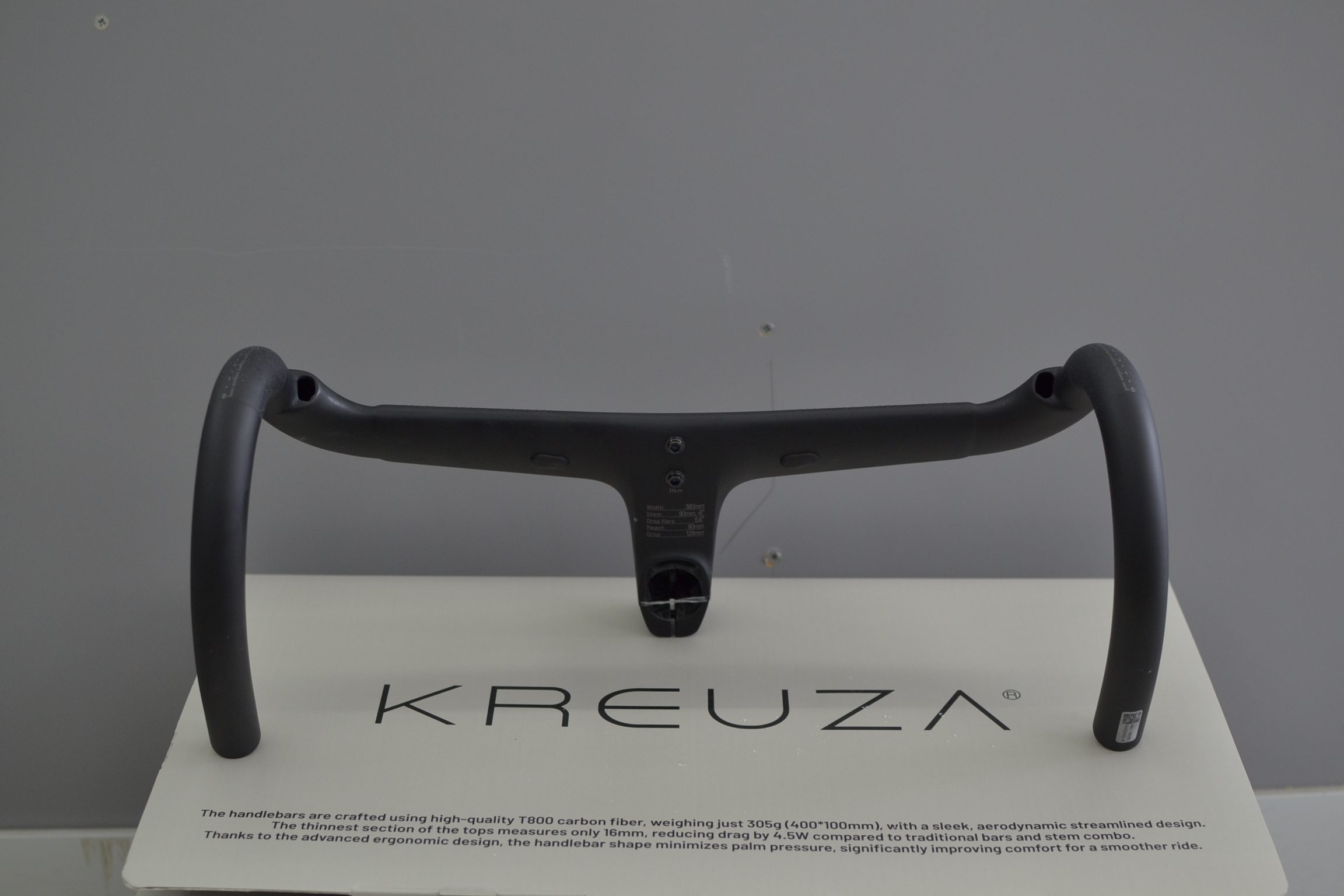 The Kreuza Apex handlebar uses T800 carbon fiber material and weighs just 305g (Painted) for the 38cm version with 110mm integrated stem. It offers 18 different combinations of widths and stem lengths. Widths range from 360mm to 400mm, while stem lengths go from 90mm to 140mm.